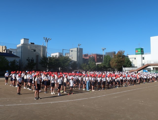 スポーツフェスまつえの全体練習を行いました。開会式の練習では、入場行進、はじめの...