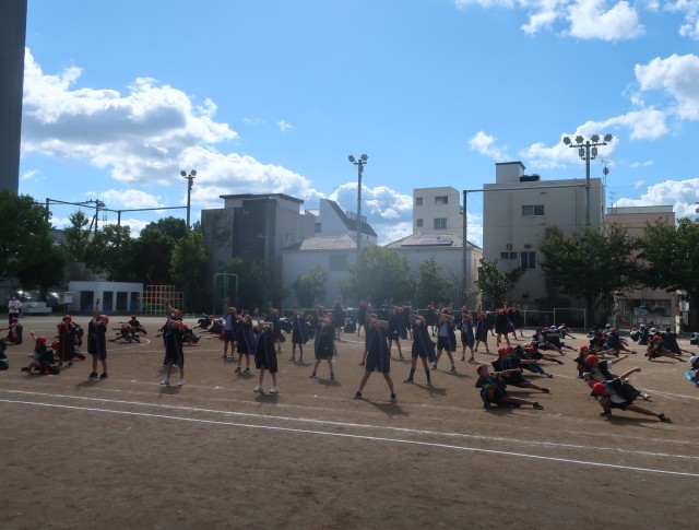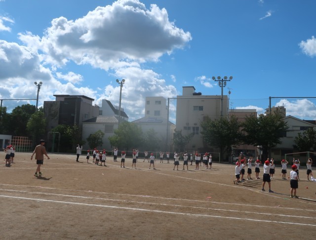 4年生が法被を着て練習しています。気合いが入って、踊りも掛け声もパワーアップです...