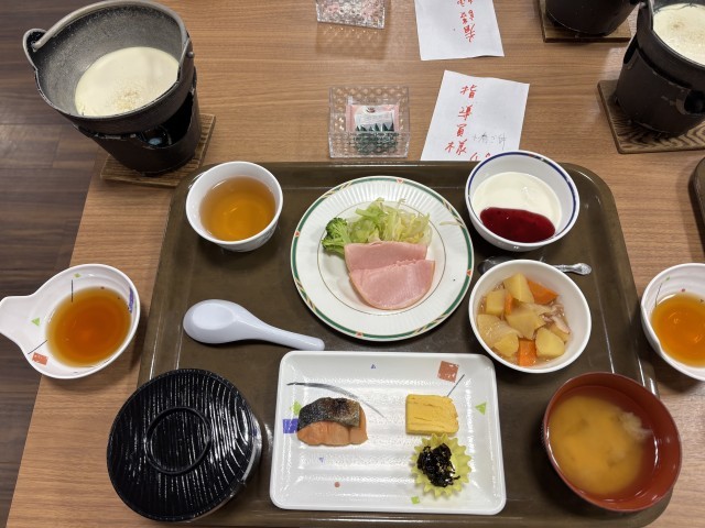 2日目の朝食です。ハイキングに向けて、しっかり朝食をいただきましょう。子供たちは...