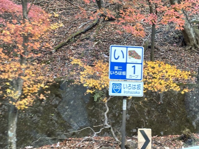 いろは坂に入りました。さあ、いろはにほへと、全部言えますか?
