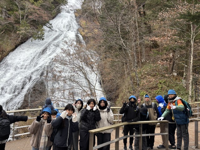 湯滝の水量の迫力に驚きです。グループで写真を撮影して、いよいよ戦場ヶ原ハイキング...
