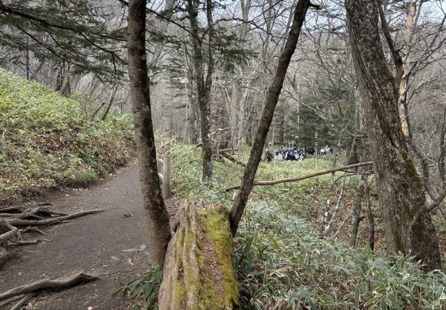 雄大な男体山を見ながら戦場ヶ原の湿原を歩いています。もうすぐゴールです。最後まで...