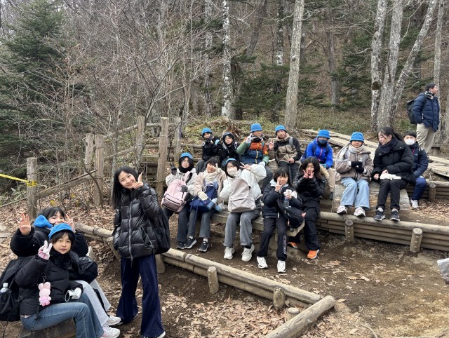 さあ、戦場ヶ原ハイキングへ出発です。みぞれが舞う寒い中ですが、元気に歩き始めまし...