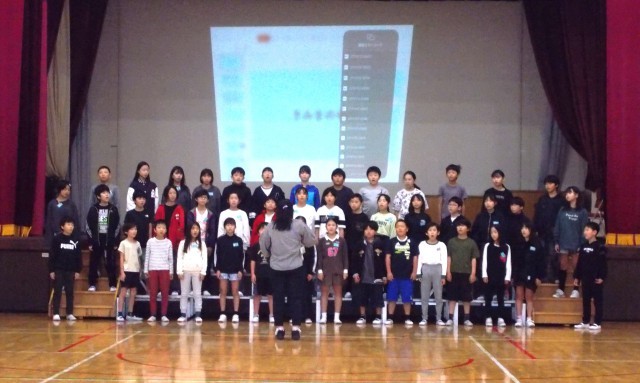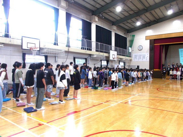 「きみをのせて」の歌を歌いました。最初に5年生が2部合唱を披露してくれました。高音のところも丁寧に歌い、美しい歌声が体育館に響いていました。そのあと、全校で歌いました。爽やかな週の始めとなりました。