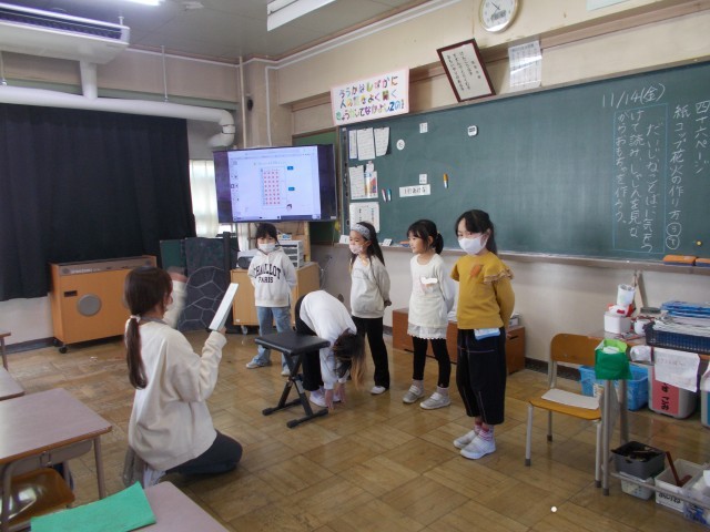 大杉芸術祭で披露する劇の練習をしていました。身振り手振りを交えながら、大きな声でセリフを言おうと努力していました。とても楽しそうに演じていました。本番まであと2週間です。楽しみです。