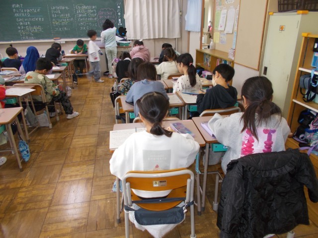 文章問題を読んで、たし算かひき算かを考えて解く問題に取り組んでいました。たし算やひき算のキーワード(例:ぜんぶで・合わせて・のこり等)となる言葉を探して確認しながら解いていました。最後にプリントの練習問題に取り組みました。子供達の様子を見ていて、たし算よりもひき算の理解の方に時間がかかっている子が多いように見えました。これから練習問題にたくさん取り組むよ