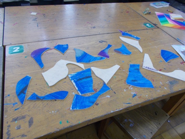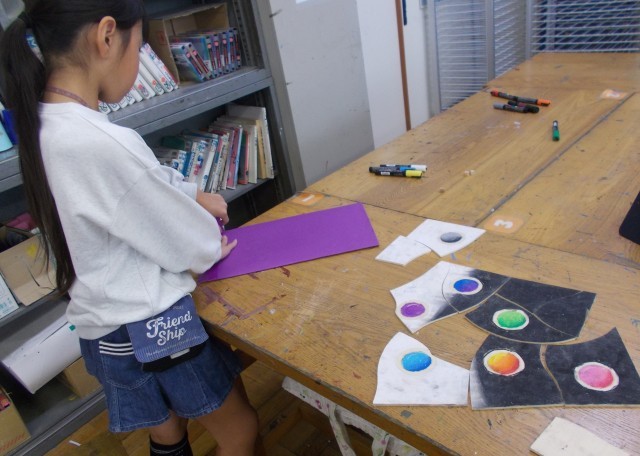 絵を描いた木の板を、電動ノコギリで切ってパズルを作っていました。実際にパズルをやってみました。パズルの切り方によって、完成させるのがとても難しかったです。