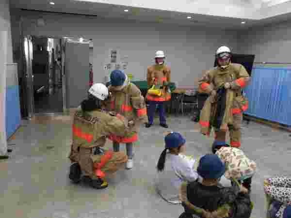 消防車の仕組みを教えていただいたり、実際の防火服を着たり、庁舎の中を見学したりして、消防署についての知識を深めることが出来ました。