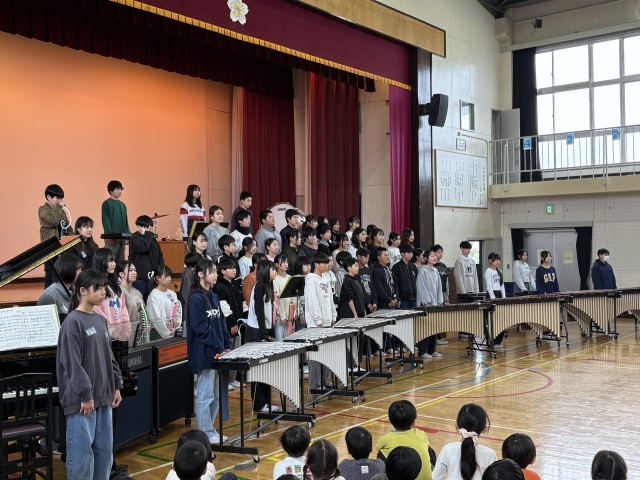 6年生を送る会がありました。お世話になった6年生に感謝の気持ちを伝えるため、歌やクイズ等の出し物をしました。そして6年生は、素晴らしい演奏を披露しました。