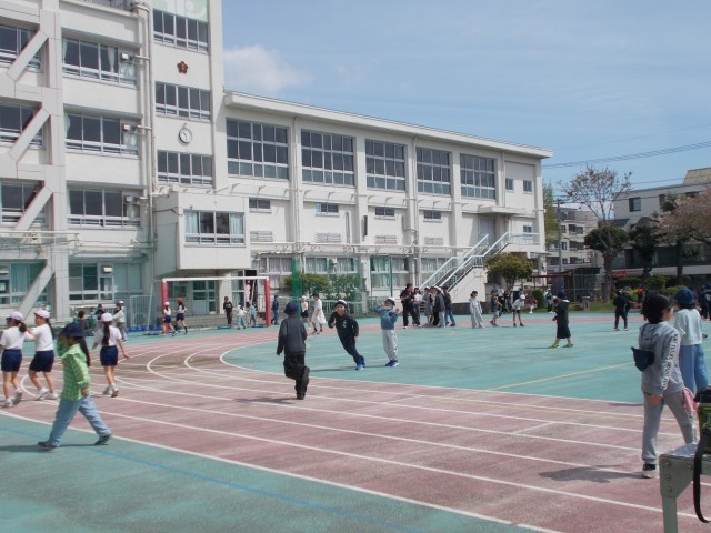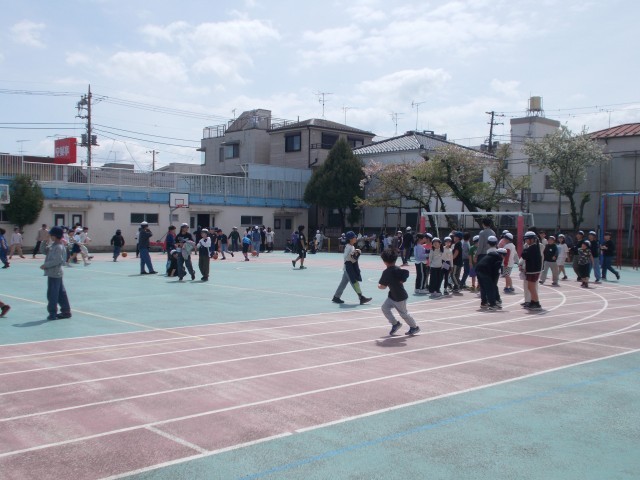 1年生も仲間入りして、全学年で校庭をかけまわっていました。