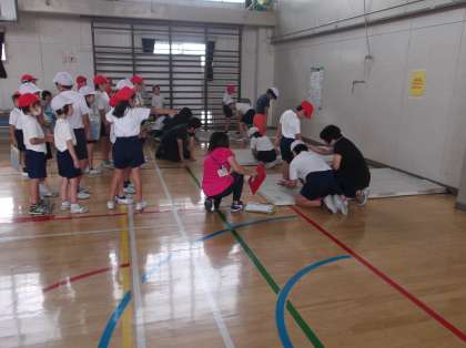 さて今日は体育館でスポーツテストが行われました。低学年の計測には高学年がついていました。4時間目に体育館をのぞくと2年生のテストに5年生がついて、声掛けや誘導、計測を行っていました。全校朝会でお話ししましたが、自分の体の様子、得意な動きや苦手な動きを知って、毎日の生活でどのような動きを取り入れたら、苦手をすこしでも解消できるか知る機会です。ご家庭でもご協力いただくところもあります。ぜひ結果についても関心をもってみていただき、ご家族で運動に親しんでいただければと思います。