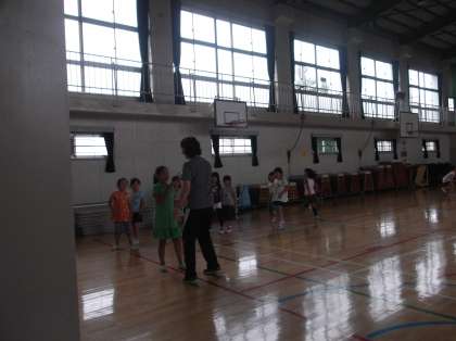 今日は朝からやや強めの雨です。全校朝会でも、「雨」がつく様々な言葉の話をしました。週番の先生からは雨の日の遊び方で、体育館の使い方についてお話がありました。梅雨時期ですので、校庭で思いっきり体を動かすことができませんが、関東地方でもダムの水が減って、取水制限が出ているというニュースもあり、雨降りも大切にしないとなと思います。さて、先ほどの話、体育館に行ってみました。今日は2年生が使える日でした。先生と遊ぶ2年生はとっても楽しそうでした。
