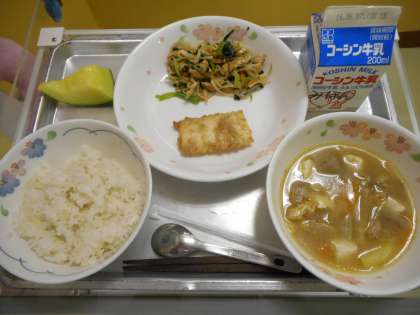 今日は和食献立。1年生を訪問すると、「メロンだ〜」と嬉しそう。2年2組も豚汁をおかわりする子がいたり、今日の献立は和食の中でも食べやすいメニューだったのかもしれません。和食だからと嫌がらず、出汁の味をしっかり知ってほしいです。