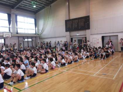 今日は2年生が表現集会に登場しました。国語で詩の学習をして、みんなでその時の詩のいくつかを群読で表現しました。大きな声で、小粋なアクションも入れて、元気に発表できました。多くの保護者の方にも見てもらえました。いつも登校の見守りをしていただいている地域の方からは「元気あっていいねえ」とほめていただきました。全学年の表現集会の最初の出番でプレッシャーもあったと思います(先生が)。いい表現でした。