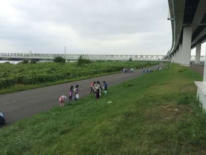 春の巻が降雨のためできず、今年度初の探検 です。長い距離を歩いて荒川に到着し、これからグループごとに活動を開始します。荒川クリーンエイドの方々に色々教えていただきながら、学習しましょう。