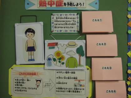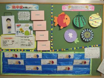 保健室前の掲示も、暑い夏を乗り切るための掲示物に変更しました。