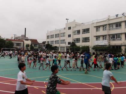 昨日は6年生に、今日は体育朝会で全児童に地域の方から「盆踊り」を教えていただき、みんなで練習をしました。炭坑節と東京音頭で、6年生は昨日のご指導やこれまでの経験で上手に踊れました。他の学年の子たちも見よう見まねで踊れていました。大杉小学校校庭を会場に来月の19日20日と盆踊り大会が予定されています。多くの子たちが参加して踊ってほしいなあと思います。