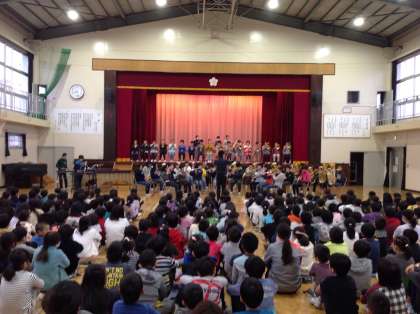 表現朝会 6年生 公開日 2018/12/12 更新日 2018/12/12 校長日記 12月12日(水) 全校児童の前で演奏する最後の機会です。演奏した「花は咲く」「風になりたい」の2曲は今週末の管楽器演奏発表会でラストになります。 いいね(0)