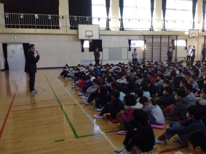 6年生が今日までお休みです。今日は久しぶりに体育館に集まって全校朝会をしました。今週は6年生を送る会があります。今週の生活目標は言葉遣いに気をつけることで、友達をさん付けしましょうというものです。階段の児童が作った表示にいたずらのようなものがあったので、先生からお話がありました。