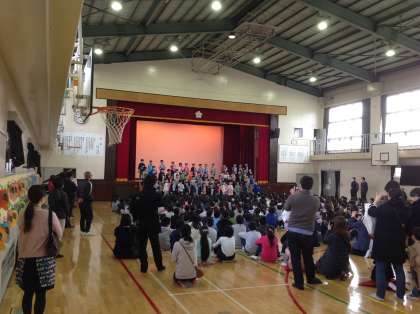 予定通り今日は1年生の表現朝会がありました。練習をしてきた鍵盤ハーモニカで「キラキラ星」「こいぬのマーチ」を合奏しました。上手に演奏できました。4月の入学式前に歓迎のセレモニーでも発表する予定です。