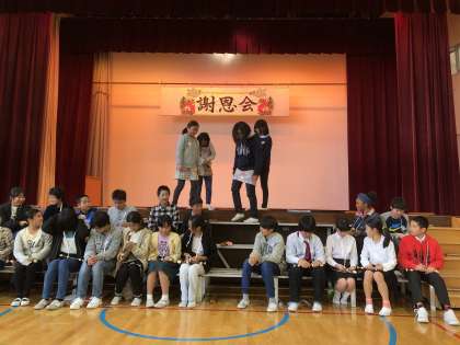 これまでお世話になった方々をお招きして体育館で謝恩会が行われました。趣向を凝らした出し物で6年間を再現していました。さすが2年前、文化センターの舞台でマジョリンを演じ切った役者揃いでした。