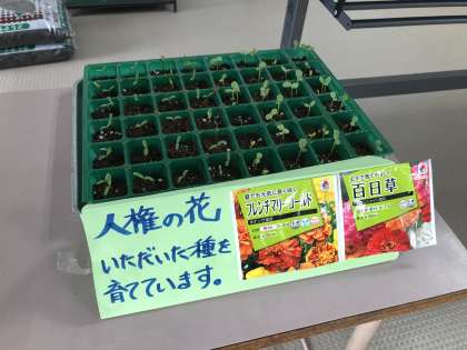今年度初の土曜日学校公開です。登校する子どもたちの表情は、まだまだ元気そうで安心しました。大人の方が疲れています。先日いただいた人権の花の種がもう発芽しました。もう一息、頑張って参りましょう。