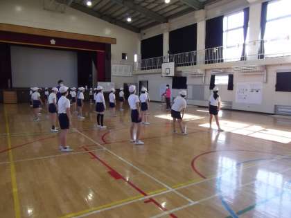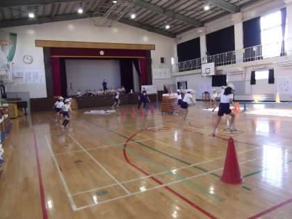 運動感覚づくりに向けての体育授業の一環として行っています。楽しそうに取り組んでいました。