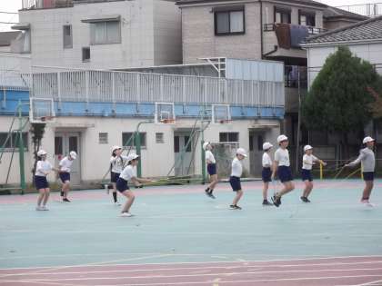 校庭でなわとびに取り組んでいました。いろいろな技の練習をするだけではなく、音楽を流してリズムに合わせてとぶ練習もしていました。これから、創作リズムなわとびにも挑戦していくようです。