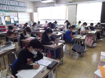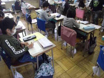 金曜日(土曜日も)の朝の時間は、自主学習の時間です。漢字、計算、テスト直しなど、それぞれの課題に向かって取り組んでいました。