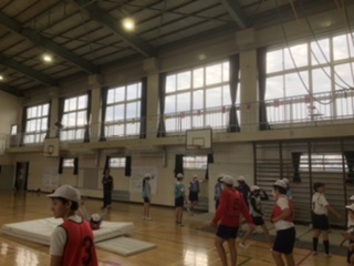 天気は朝から下り坂で、1校時から曇天です。校庭では5年生がハードル走を体育館では6年生がマット運動をしていました。