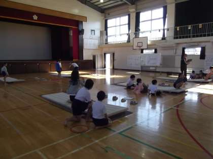体育館でマット運動の学習をしていました。後転に挑戦しています。なかなか思うようにいかないことも…。難しいものですね。