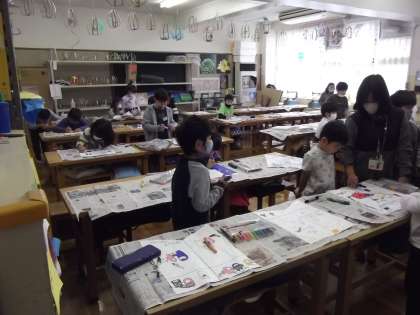 3年生の図工の授業では、作品づくりに夢中でした。楽しそうに活動しています。