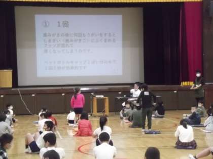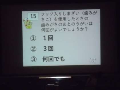 5時間目に体育館で、校医さんによる「歯科指導」がありました。DVDを視聴した後、今日学んだ大切なことについてクイズ形式で復習をしました。進んで質問する子もいました。
