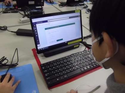 チームスのサインインの練習をしました。とまどいながらも全員が無事にサインインすることができました。その画面で出題されたクイズに回答しました。満点の人もいました!