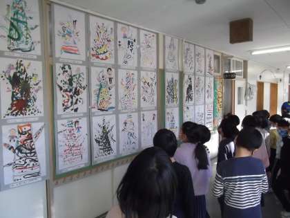展覧会に代わる校内展示として開催した「アートウィーク」が終わりました。多くの保護者の皆様に参観していただきました。作品を通して「大杉っ子」たちの成長を感じていただけたのではないでしょうか。子どもたちも、他の学年の作品を鑑賞し、きっと多くの刺激を受けたことと思います。次回の「展覧会」は3年後の予定です。子どもたちの作品がたくさん並ぶ、体育館が美術館化する「展覧会」の開催できることを期待したいものです。