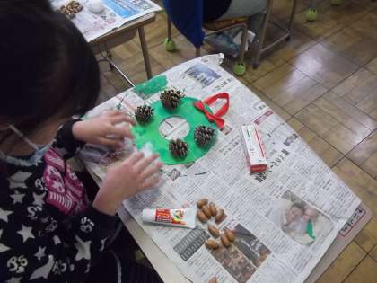 もうすぐ2学期が終わります。そして今年も。まとめに向けてそれぞれの学年がラストスパートというところのようですが、子どもたちの気持ちは「クリスマス」?に向かっているのかもしれません。楽しそうにリースを飾り付ける1年生からは、楽しみにしているメッセージが聞こえてきました。