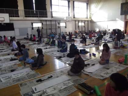 1月10日(木)、席書会が行われました。今年の書き初めで書いた文字は「美しい空」です。どの児童も気持ちを落ち着かせて、筆使いや字形に気を付けながら書くことができました。15日から席書会の作品を各教室前の廊下に貼り出します。ぜひ、ご覧ください。