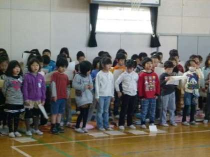 今朝は、1年生から5年生で6年生を送る会で歌う「切手のないおくりもの」〜大杉バージョン〜の練習をしました。6年生に自分たちが作詞した言葉が伝わるように、声を大きく、そして、口をはっきり動かすことに気をつけて練習しました。