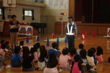 6月19日(水)に校内研究授業がありました。1年1組の授業を学校の先生方みんなで見ました。交通安全についての授業で、信号のある横断歩道の渡り方を学習しました。友達同士で、 「信号が青の時だけわたっているか」「右左右をみて確かめているか」「手を挙げてわたっているか」をチェックしました。最後におまわりさんの話を聞きました。道路では決して遊ばないこと、キックボードやスケートボードを道路で使わないことなどを約束しました。お家でも、一度道路の歩き方渡り方を話し合ってみてください。