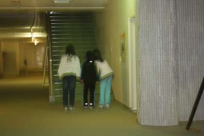 たくさんのオバケたちに驚かされながらも、手をつないで一生懸命ゴールにたどり着きました。