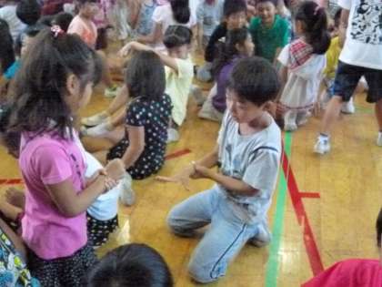 9月4日の児童集会は,「じゃんけん進化ゲーム」をしました。じゃんけんに勝つと「かめ」→「ひよこ」→「天使」と進化することができるゲームでした。様々な学級の友達と交流することができました。