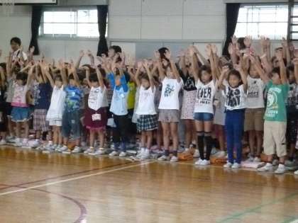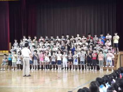 また、全校児童で音階を歌う練習をしました。手を動かして、楽しく練習できました。そして「つばさをください」を全校合唱しました。のびのびとした良い歌声でした。