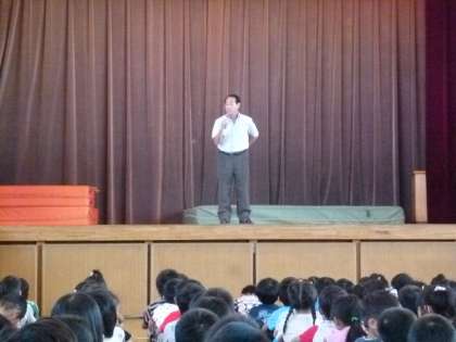 夏休みの水泳の努力賞をもらった人を表彰しました。