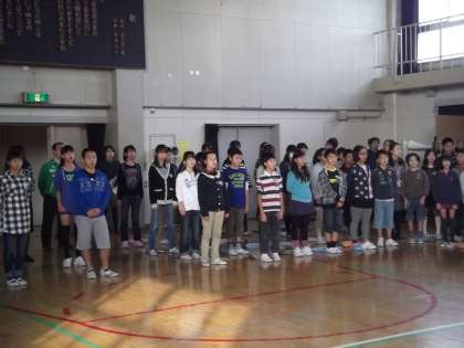 今日は音楽朝会がありました。最初に学芸会で大きな声で台詞を言えるように、息の吸い方と声をしっかり出す練習をしました。