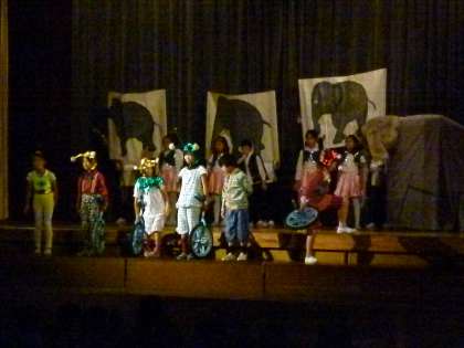 4年生が演じたのは「ぞうれっしゃがやってきた」という実際に起こった出来事をもとにした劇でした。サーカスの華やかな場面,戦争のつらく悲しい場面など,一人一人が役や場面の様子を考え,言葉や動きで表現できるように頑張りました。