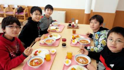 お昼はバイキングです。和気あいあいとモリモリ食べています。