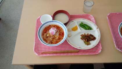 お昼はバイキングです。和気あいあいとモリモリ食べています。