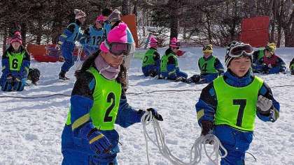 午後は雪上運動会をしました。班別対抗で四種目行いました。