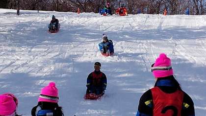 雪上運動会の様子です。どの班も一位を目指して力の限り競技し、笑顔の絶えない会でした。
