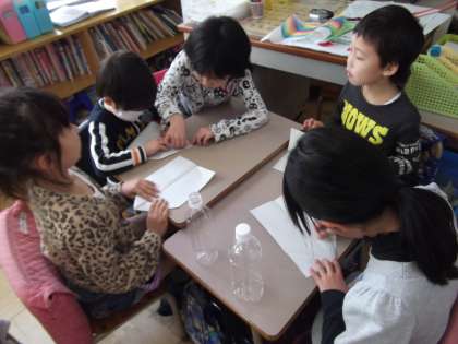 2月28日(金)に2年生が1年生におもちゃ作りを教える、「おもちゃランド」がひらかれました。2年生が生活科の授業で研究してきた紙飛行機やストローアーチェリーの作り方を丁寧になかよしグループの1年生に説明してくれました。作ったおもちゃはさっそく1年生の教室やフレンドルームで遊びました。1年生は夢中になって遊んでいました。